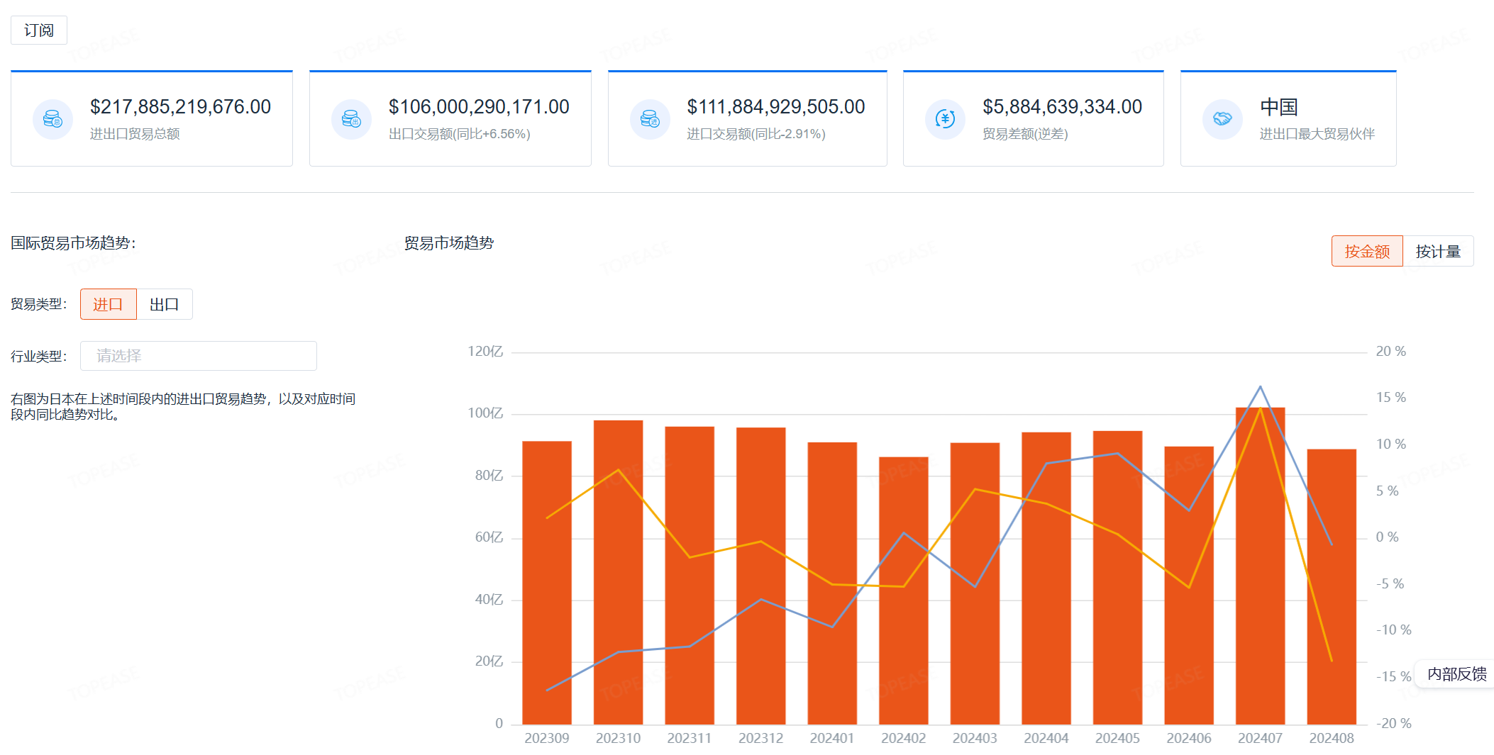日本市场需求变化快,优先使用近12个月的最新数据,特易外贸资讯宝会及时更新数据,可定期刷新查看。